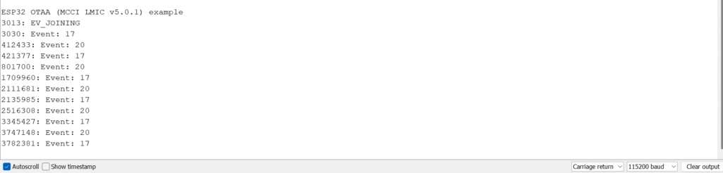 Serial.println(F("\nESP32 OTAA (MCCI LMIC v5.0.1) example"));